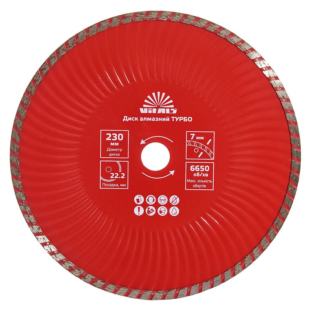 Опис алмазного диску Vitals ТУРБО230х22.2х7 мм