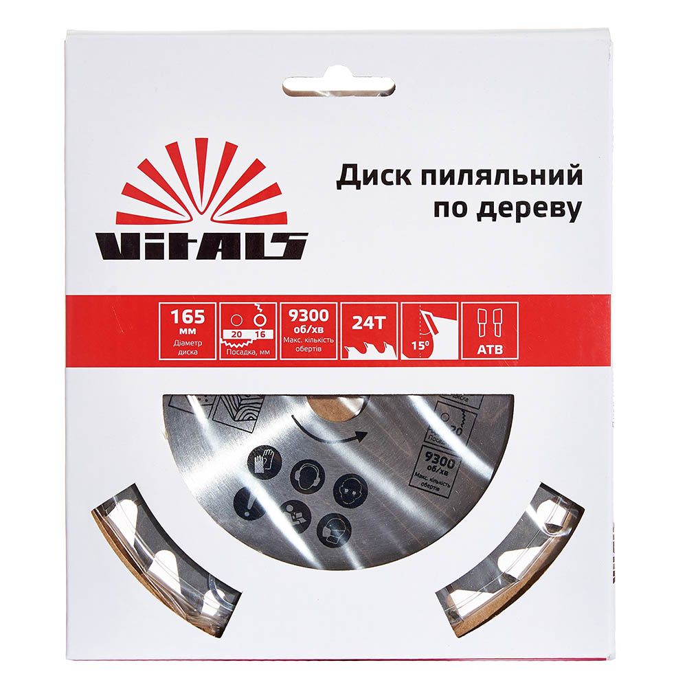 Пиляльний диск Vitals по дереву 165х20/16, ATB 24 підходить для поздовжнього та поперечного розпилу деревини - як м'якої, так і твердої породи, а також ДВП, ДСП.