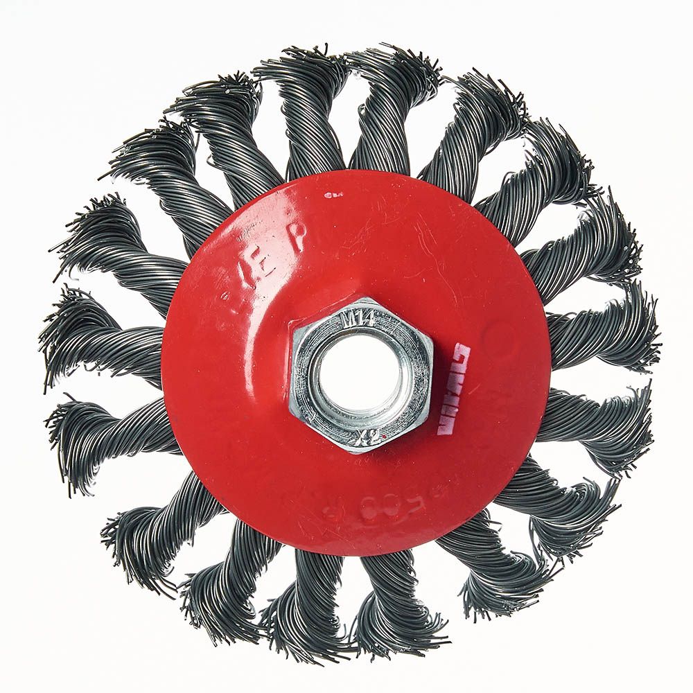 Щітка конічна Vitals плетена сталь 100 мм М14, 0,5 мм призначена для обробки дерева, зняття фарби, шліфування металу, зняття іржі, обробки зварювальних швів. Оптимально підходить для обробки важкодоступних місць та внутрішніх поверхонь.