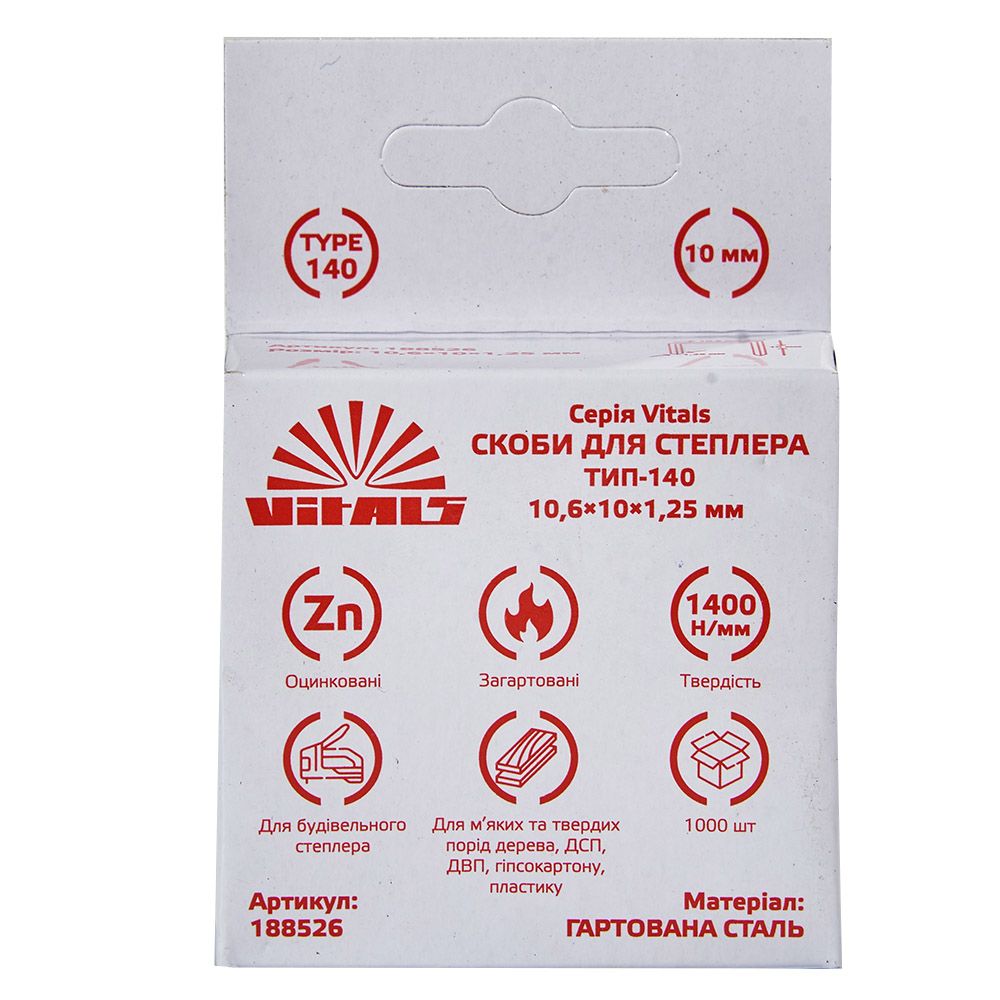 Опис скоб для степлера тип-140 10 × 1,2 мм 1000 шт. Vitals