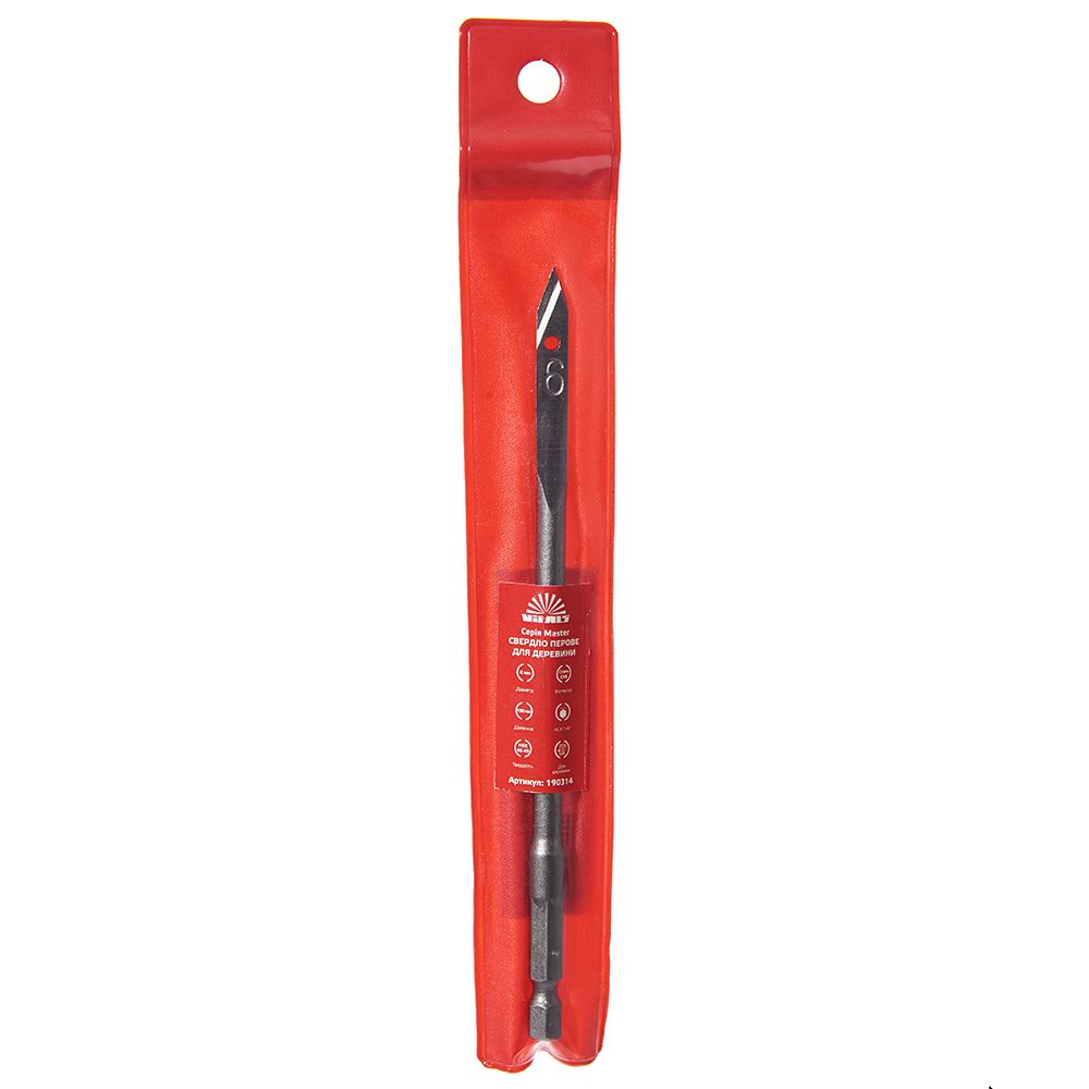Свердло по дереву пір’яне 6 мм Vitals Master – це високоякісне свердло для свердління отворів у різних дерев'яних матеріалах. Свердло виготовлене зі сталі 45, яка має високу міцність і зносостійкість. Твердість свердла становить 45-49 HRC, що гарантує тривалий термін служби та надійну роботу. Довжина свердла становить 150 мм, що дозволяє свердлити отвори достатньої глибини. Свердло має шестигранний хвостовик (HEX), який запобігає провертанню в свердлильному патроні та забезпечує зручне захоплення. Також є цифрове маркування, яке вказує діаметр свердла в міліметрах, вимірюється по ширині лопатки. У свердла є центруючий робочий наконечник, який служить для центрування свердла та його початкового заглиблення у матеріал. Дві пари ріжучих кромок торцевої та бічної робочих частин служать для основного свердління отвору. Свердло по дереву пір’яне підходить для роботи з електричними та акумуляторними дрилями. Свердло по дереву пір’яне – це ідеальний інструмент для деревообробки та меблевого виробництва.