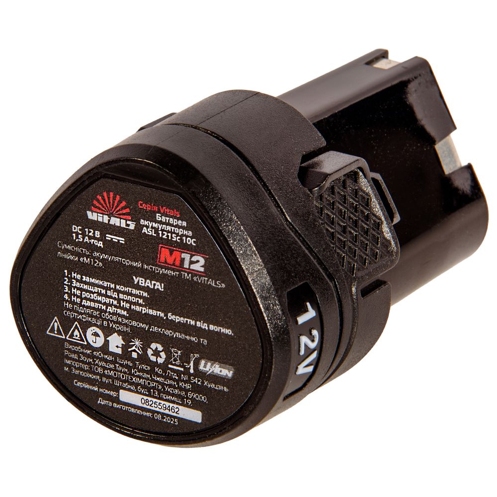 Батарея акумуляторна призначена для живлення акумуляторних ручних інструментів ТМ «VITALS» лінійки «М12» та інших сумісних виробів.