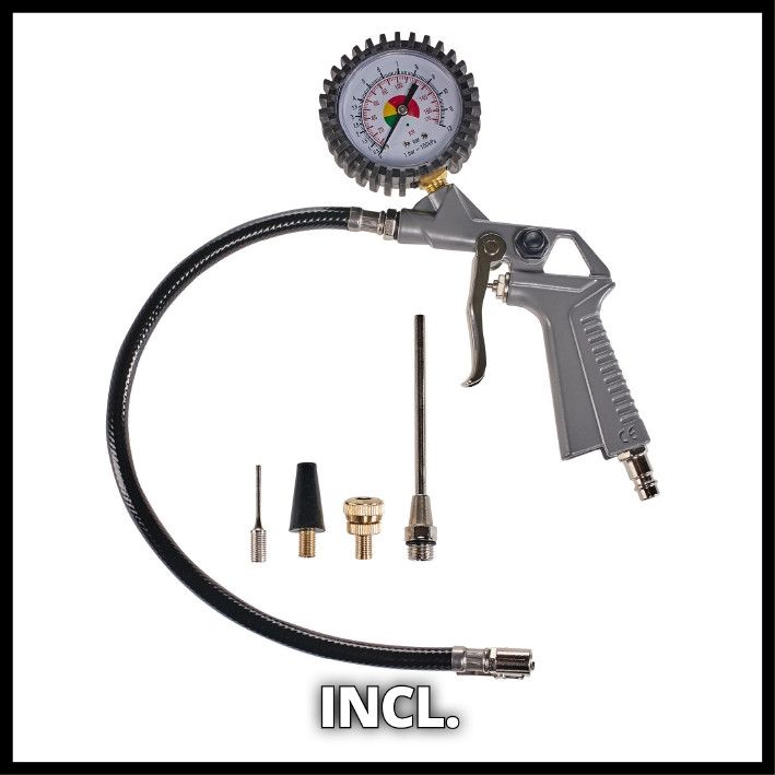 У комплекті з продувним пістолетом, шинним манометром та набором перехідників у кількості 3 шт.
