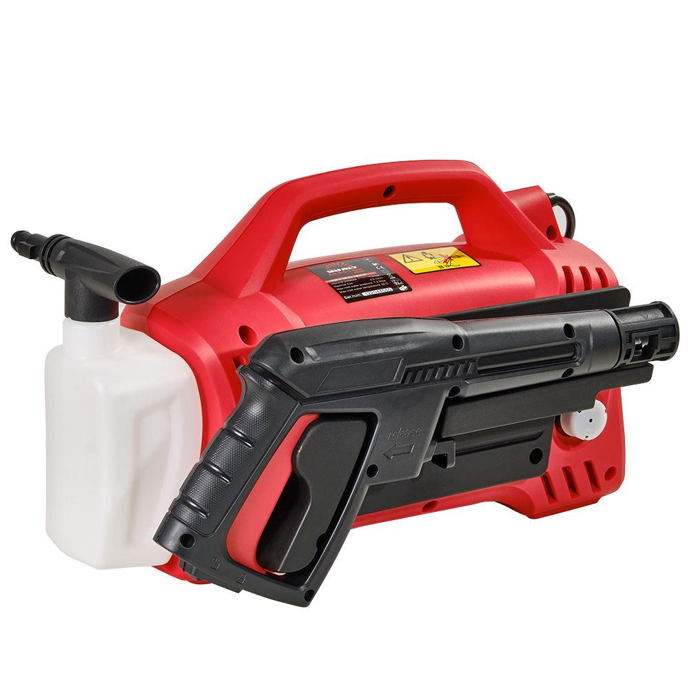 Приводний електродвигун і насос високого тиску з’єднані в один робочий блок. Він поміщений в міцний пластмасовий корпус, забезпечений ручкою для перенесення та чотирма опорами. До робочого блоку за допомогою шлангу високого тиску під’єднаний пістолет із форсункою. На корпусі є кріплення для пістолета високого тиску.