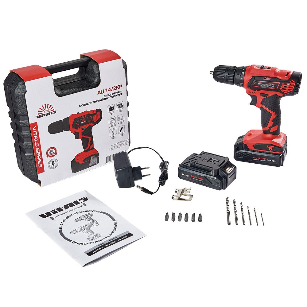 Дриль-шурупокрут акумуляторний Vitals AU 14/2KP має новий, яскравий дизайн. У комплекті постачання є 2 батареї ємністю 1500 мА∙год, а також зарядний пристрій. Дриль-шурупокрут акумуляторний Vitals AU 14/2KP постачається в міцному пластиковому кейсі для зручності транспортування та зберігання. Максимальний діаметр хвостовика оснащення, який можна зафіксувати у швидкозатискному патроні, дорівнює 10 мм. Модель має 2 швидкості обертання шпинделя. На першій швидкості досягається максимальний крутний момент у 30 Нм — для закручування кріпильних виробів. На другій швидкості досягаються високі оберти в 1400 об/хв — для свердління отворів.
