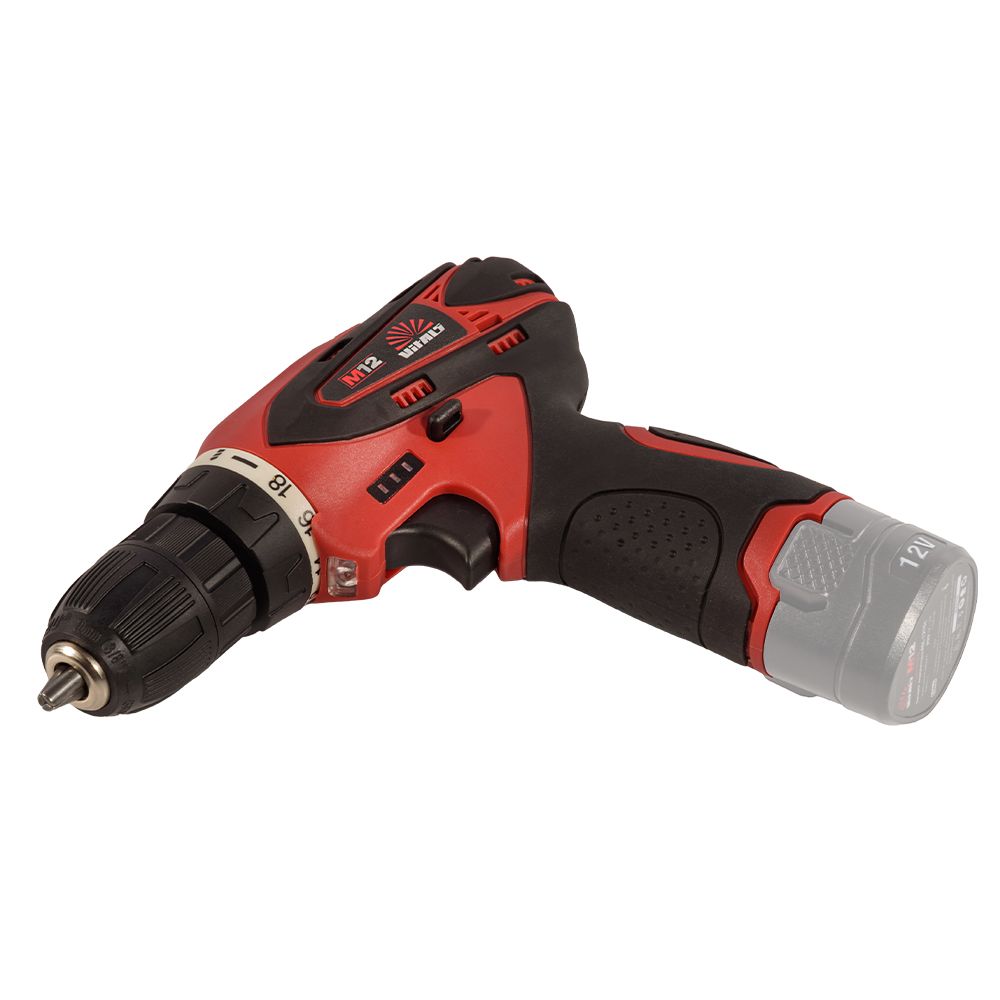 Дриль-шурупокрут акумуляторний ТМ «VITALS» AU 1221c — надійний і безпечний інструмент для закручування та відкручування кріплень, а також свердління отворів діаметром 0,8–10 мм. Має два режими швидкості, реверс, LED-підсвічування робочої зони та швидкозатискний патрон для зручності роботи. Ергономічний корпус із ударостійкого пластику забезпечує захист і комфорт. Працює від Li-ion акумулятора лінійки «М12» (не входить до комплекту).