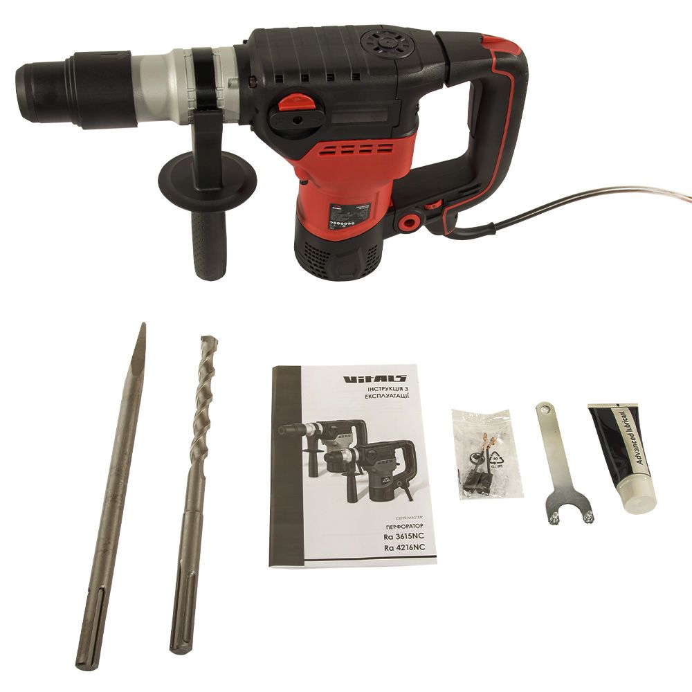 Перфоратор Vitals Master Ra 4216NC — професійний SDS-max інструмент для найважчих робіт із бетоном і каменем. 1600 Вт двигун і сила удару 12 Дж разом із діаметром свердління до 42 мм роблять його справжнім «робочим конем» на великих об’єктах.