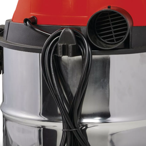 Промисловий пилосос для вологого та сухого прибирання Einhell TC-VC 1930 S – це потужний помічник з двигуном 1500 Вт для глибокого та ретельного прибирання. Пилосос оснащений міцним баком з нержавіючої сталі місткістю 30 літрів, який не піддається корозії. Інтегрований зливний гвинт забезпечує легке спорожнення бака від рідини. Функція видування дозволяє очищати важкодоступні місця потоком повітря. Чотири поворотних колеса забезпечують відмінну маневреність під час роботи. Для зручного зберігання обладнання передбачено практичний тримач аксесуарів та гачок для кабелю на корпусі. У комплект входить пластиковий всмоктувальний шланг довжиною 2,5 м (діаметр 36 мм) з високою пропускною здатністю повітря та бруду, дві телескопічні трубки, насадка для підлоги, щілинна насадка, поролоновий та складчастий фільтри.