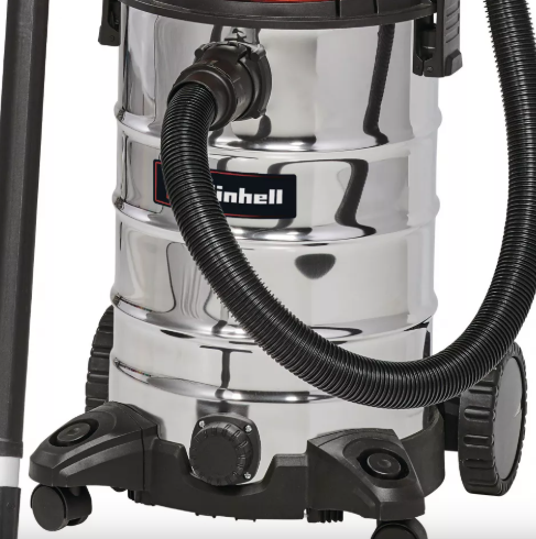 Промисловий пилосос для вологого та сухого прибирання Einhell TC-VC 1930 SA – це потужний помічник з двигуном 1500 Вт для ретельного прибирання. Пилосос оснащений міцним баком з нержавіючої сталі місткістю 30 літрів, який не піддається корозії. На корпусі інтегровано зливний гвинт для води та автоматичну розетку для підключення електроінструменту. Функція видування дозволяє очищати важкодоступні місця потоком повітря. Два великих колеса та два поворотних ролика забезпечують відмінну мобільність. Для зручного зберігання обладнання передбачено практичний тримач аксесуарів та гачок для кабелю на корпусі. У комплект входить пластиковий всмоктувальний шланг довжиною 2,5 м (діаметр 36 мм) з високою пропускною здатністю повітря та бруду, дві телескопічні трубки, насадка для підлоги, щілинна насадка, поролоновий та складчастий фільтри.