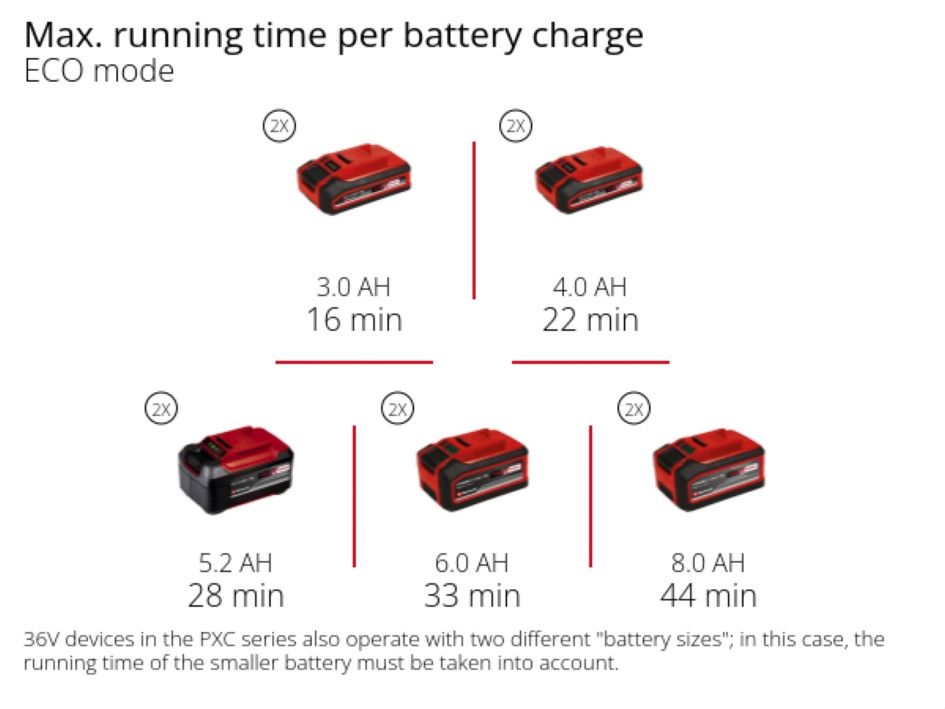 - Рекомендація для найкращих результатів - акумулятор 3,0 Ah і вище