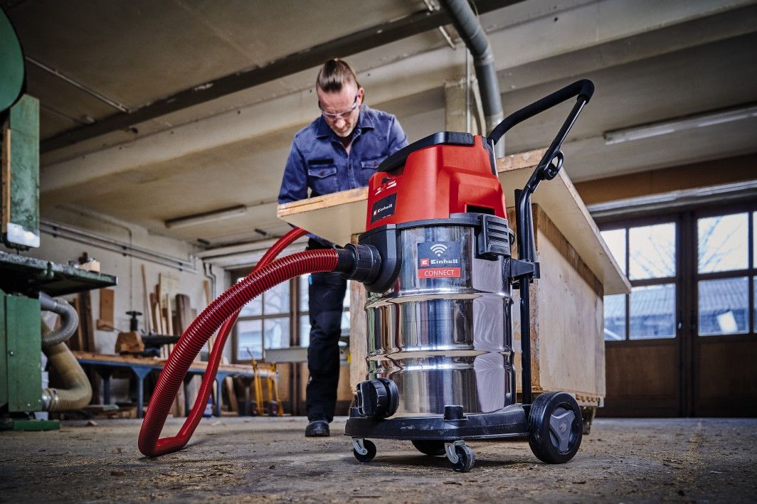 Акумуляторний миючий пилосос з автоматичним запуском Einhell TP-VC 36/30 S Auto-Solo - це революційне рішення для професійного сухого та вологого прибирання з інноваційною технологією AUTO CONNECT. Завдяки функції connectivity пилосос автоматично включається при роботі з акумуляторними інструментами, забезпечуючи чисте робоче місце без додаткових зусиль. Ідеально підходить для професійних майстерень, будівельних майданчиків та промислового використання.