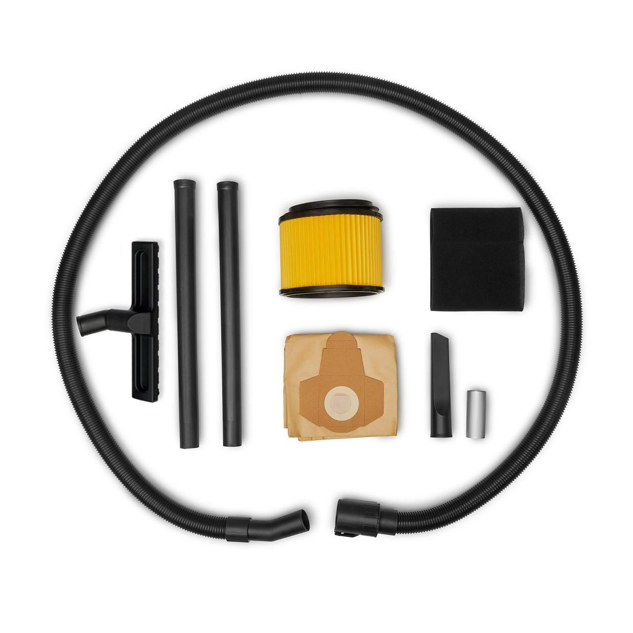 В комплекте всасывающий шланг длиной 2,5 метра, пластиковая всасывающая трубка из двух частей.