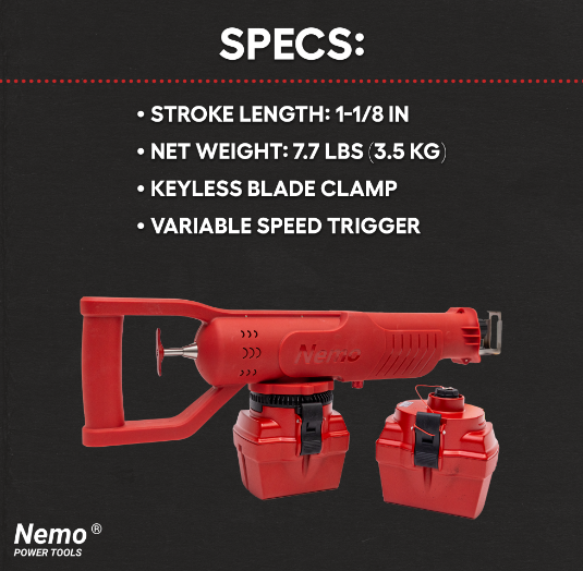 Ключові переваги Nemo Reciprocating Saw - 50M