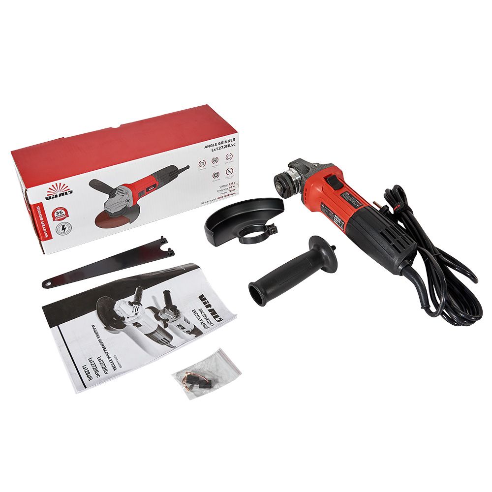 Кутова шліфувальна машина Vitals Master Ls1272HLvc вирізняється потужністю у 720 Вт та регульованою частотою обертів від 4 500 до 10 500 обертів за хвилину, що дозволяє налаштувати інструмент під конкретні завдання. Максимальний діаметр абразивного диска становить 125 мм, забезпечуючи універсальність під час роботи з різними матеріалами.