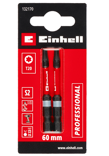 Біта подвійний торсіон ударна 60 мм, S2, T20, 2 шт, Einhell