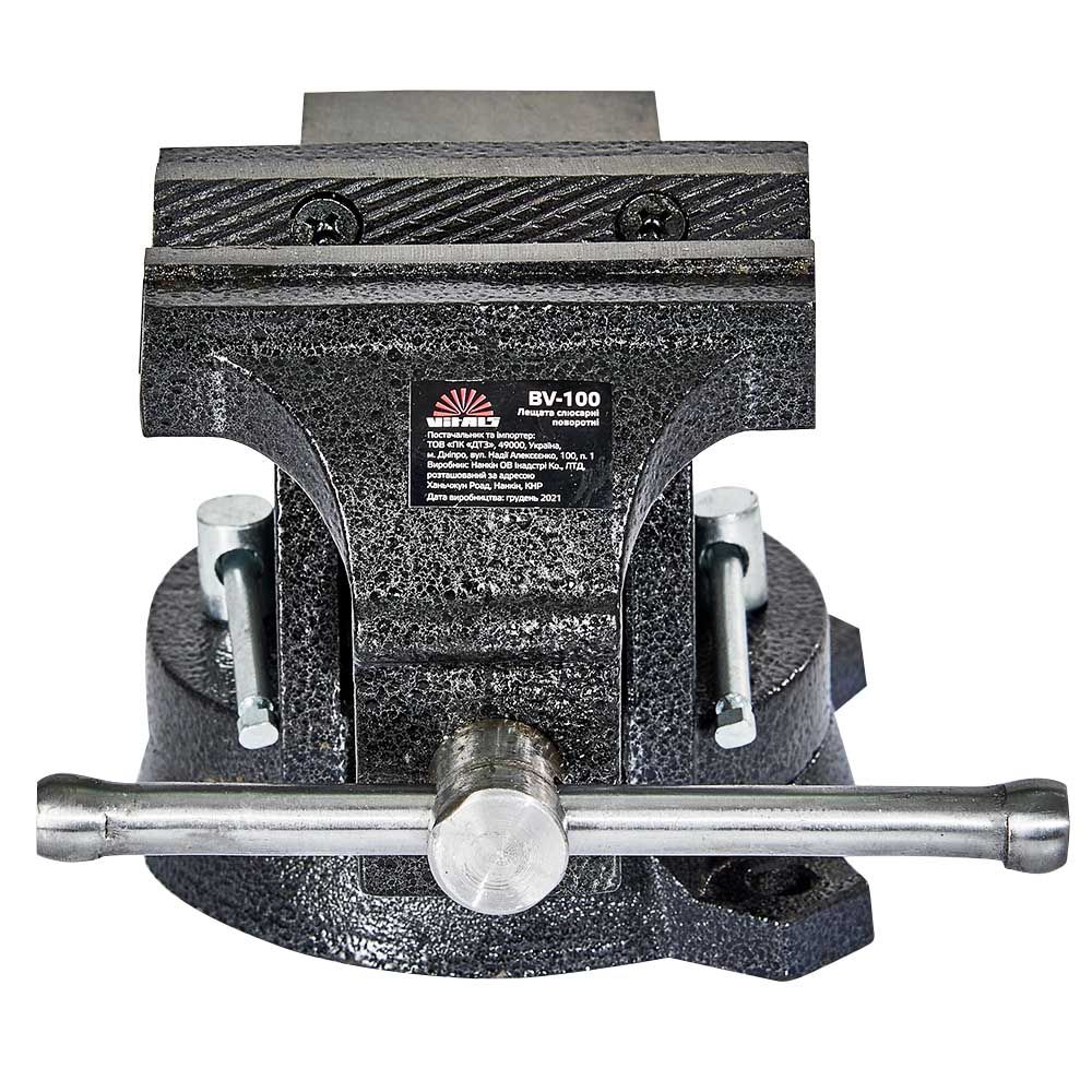 Лещата слюсарні поворотні Vitals BV-100 призначені для закріплення заготівель, предметів, деталей для подальшої обробки.