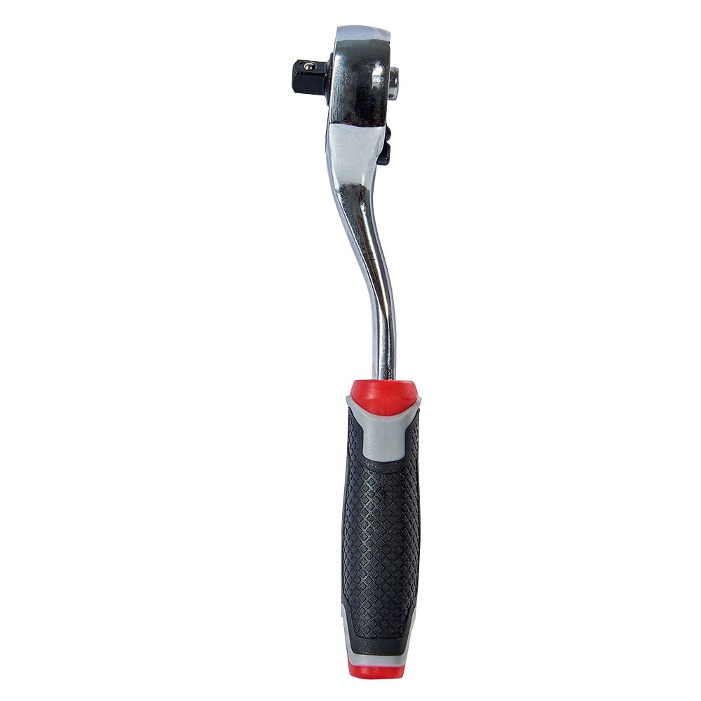 Основу комплекту складає тріскачка на 1/4″ з перемикачем напрямку та кнопкою для скидання та фіксації головок. Вигнуте руків'я дозволяє працювати з незручно розташованими кріпленнями.