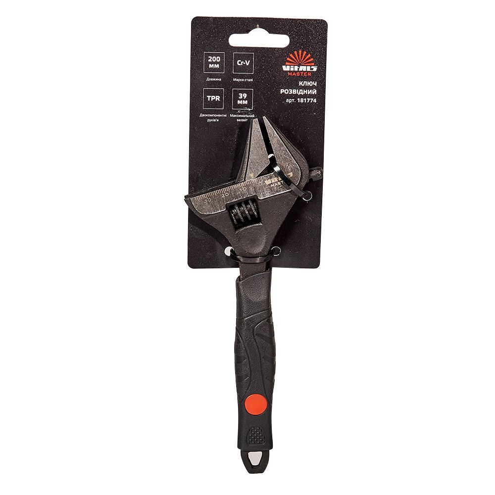 Ключ розвідний тонкі губки 200 мм Vitals Master застосовується для монтажу та демонтажу різьбових з'єднань.