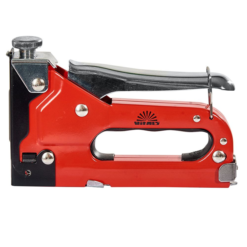 Степлер будівельний T53 4–14 мм Vitals — незамінний інструмент для тих, хто займається будівництвом, ремонтними роботами, виробництвом меблів.
