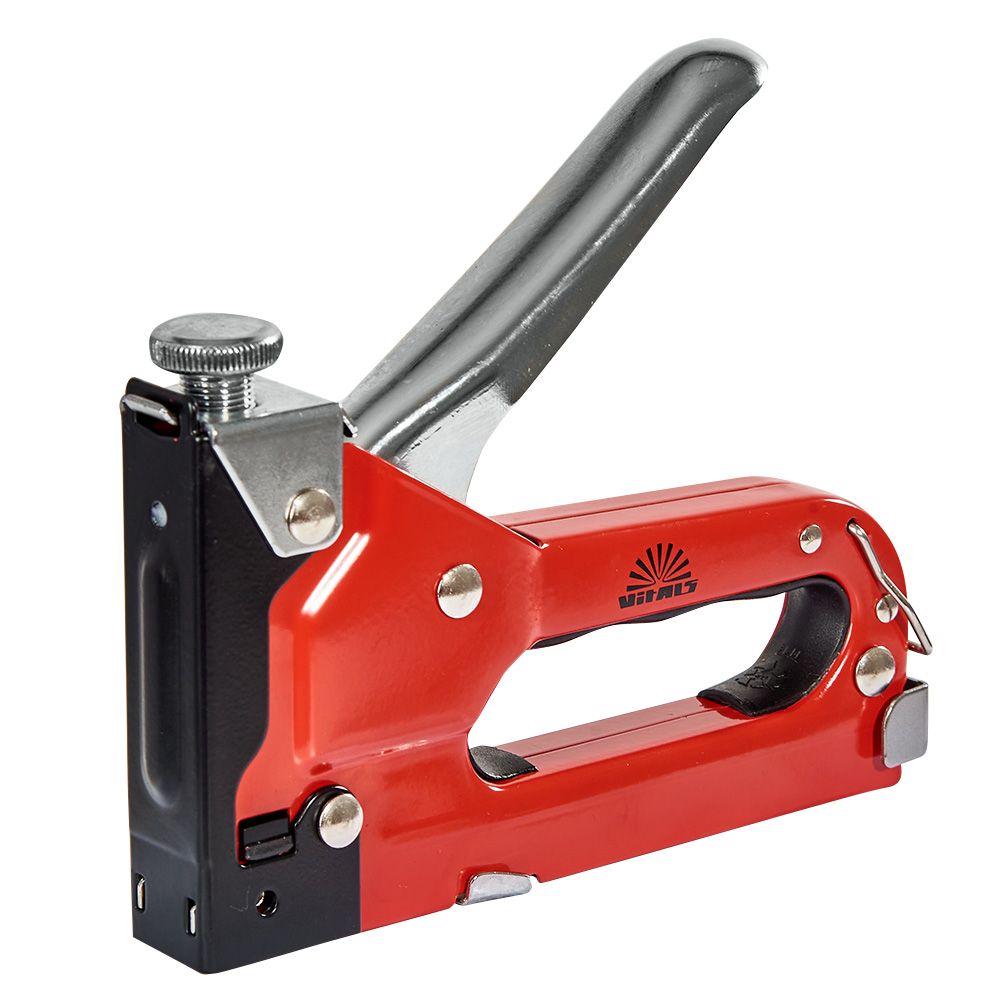 Степлер будівельний T53 4–14 мм Vitals — незамінний інструмент для тих, хто займається будівництвом, ремонтними роботами, виробництвом меблів.