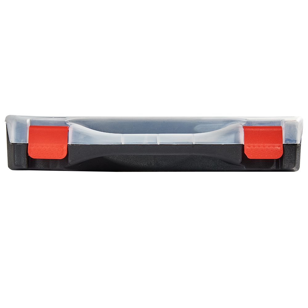 Ударостійкий корпус з АБС-пластику та міцні пластикові замки надійно захистять вміст від пошкоджень та раптового розсипання. Ергономічне руків'я дозволить легко та зручно транспортувати органайзер на будь-яку локацію.
