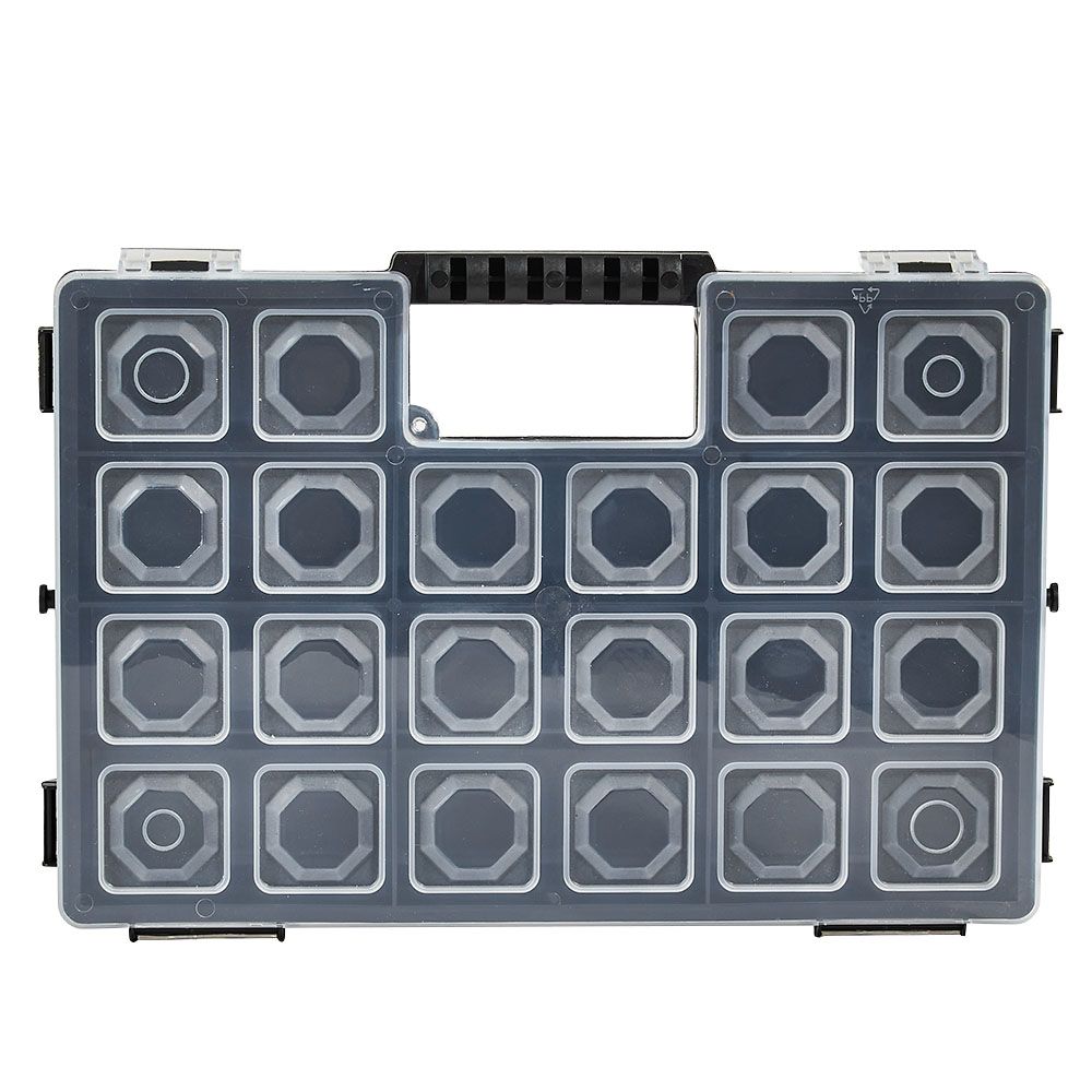 Він стане незамінним для зберігання наборів інструментів та дрібних деталей домашнього майстра, творчої рукодільниці, затятого рибалки та мисливця, адже грамотний поділ на секції дозволяє системно організувати зберігання дрібних деталей.