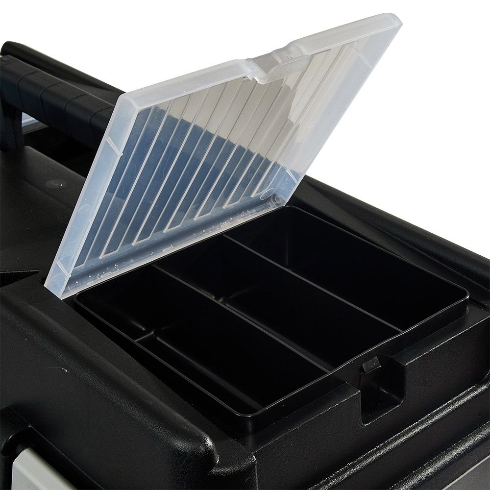 Завдяки корпусу з ударостійкого АБС-пластику та високої функціональності, ящик для інструментів стане незамінним помічником як для домашнього майстра чи автолюбителя, так і для працівників комунальних служб.