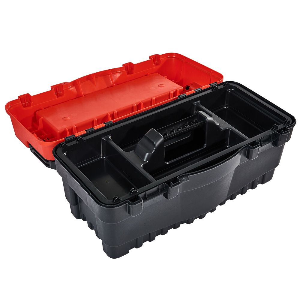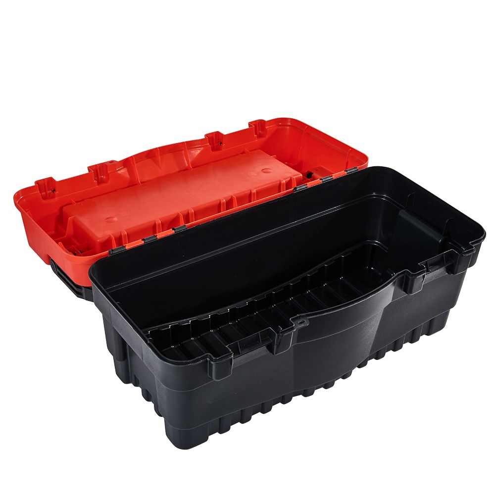 Завдяки корпусу з ударостійкого АБС-пластику, ящик надійно захищає інструменти від пошкоджень та негативного впливу навколишнього середовища. Ергономічне руків'я для транспортування дозволить легко перемістити ящик на потрібну локацію.