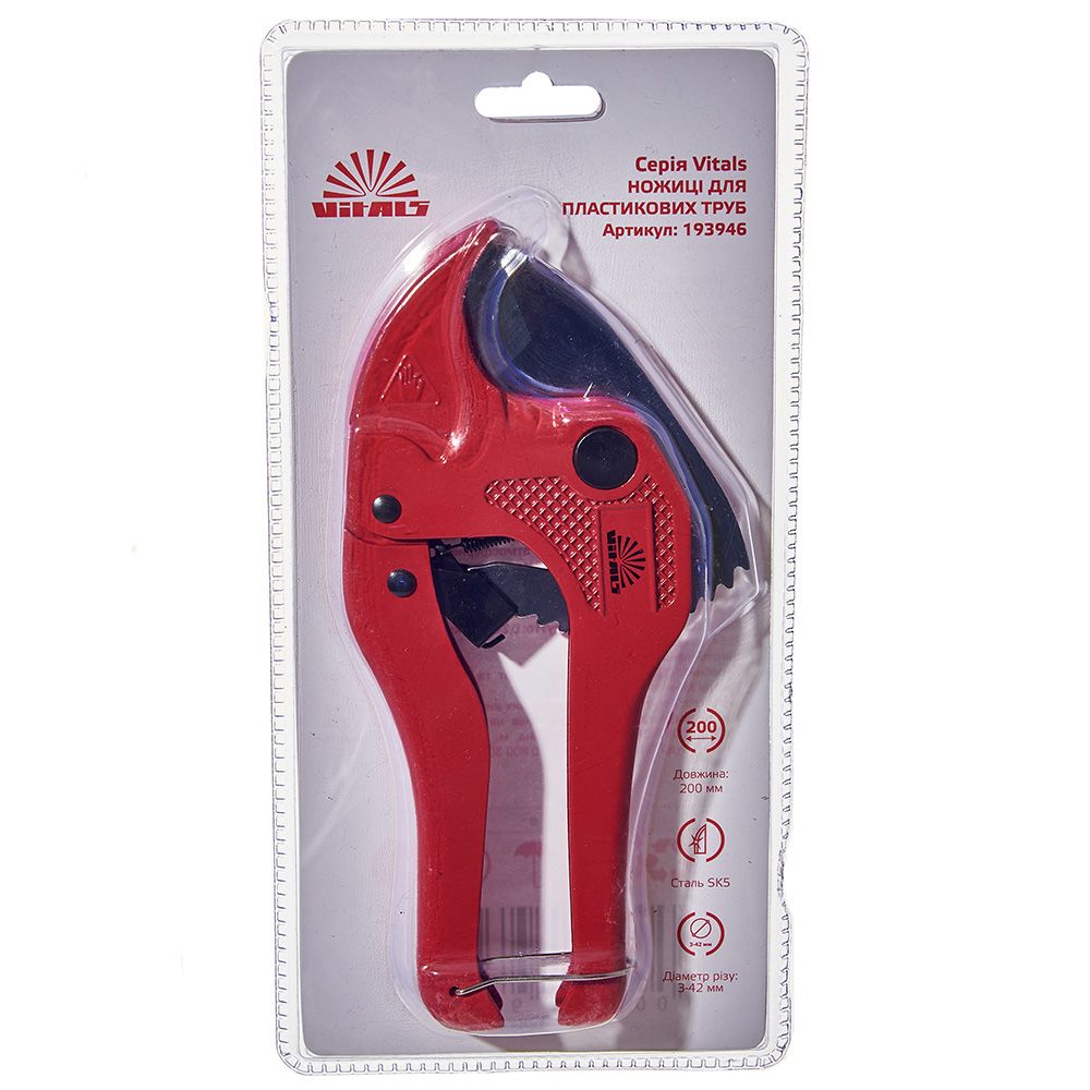 Опис ножиць 200 мм для різання ПВХ-труб 3-42 мм Vitals