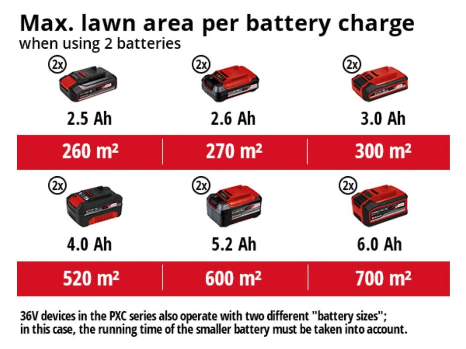 Акумуляторна газонокосарка Einhell GE-CM 36/48 Li M-Solo є членом сімейства Power X-Change, працює від безщіткового електродвигуна і забезпечує продовжений час роботи завдяки технології "Double Twin Pack Technology". Модель Highwheeler має дружні до газону колеса великої площі та міцний корпус зі сталевого листа. Висота скошування мульчувальної газонокосарки регулюється в 6 положеннях осьово (30-75 мм), також опціонально можна приєднати комплект для бокового викиду.