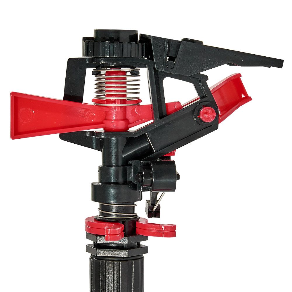 Має 4 режими регулювання або зони поливу: 1/4 кола, 1/2 кола, 3/4 кола, повне коло. Поворот головки регулюється, що дозволяє поливати заданий сектор. На відміну від ручного поливу зі шланга, ґрунт зволожується рівномірно, не утворюються калюжі.
