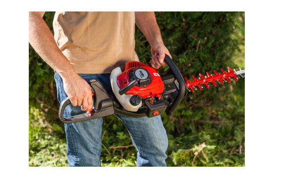 Задня ручка має прогумоване покриття та може фіксуватися в різних положеннях. Це дозволяє оператору тримати інструмент природним чином як при горизонтальному підрізанні верхівок, так і при вертикальному формуванні стін огорожі.