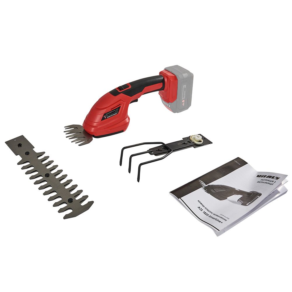 Ножиці-кущоріз акумуляторний ТМ «Vitals», cерії «Master», моделі «AZS 1820 SmartLine+», є ручним електричним інструментом з акумуляторним живленням, зі змінними насадками який призначений для пістрігання трави, розпушування грунту, а також проведення сезонних робіт з формування та підрізання зелених насаджень, а саме живоплоту, кущів та декоративних дерев у вертикальній та горизонтальних площинах під час:
