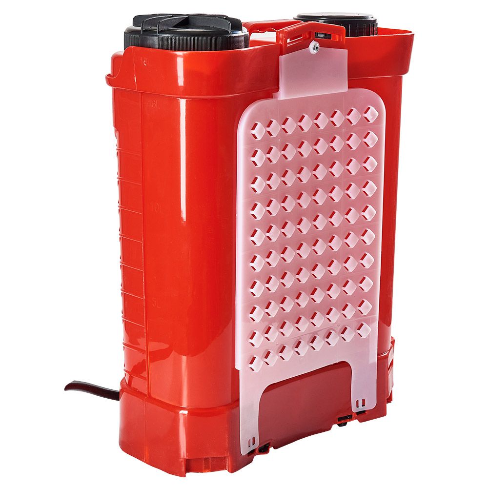 Робочий тиск у межах 0,25–0,45 МПа гарантує рівномірне розпилення препаратів, що дозволяє досягти високої ефективності під час обприскуванні як низькорослих, так і високих рослин. Об’єм бака становить 16 літрів — цього достатньо для обробки великої площі без частого доливання.