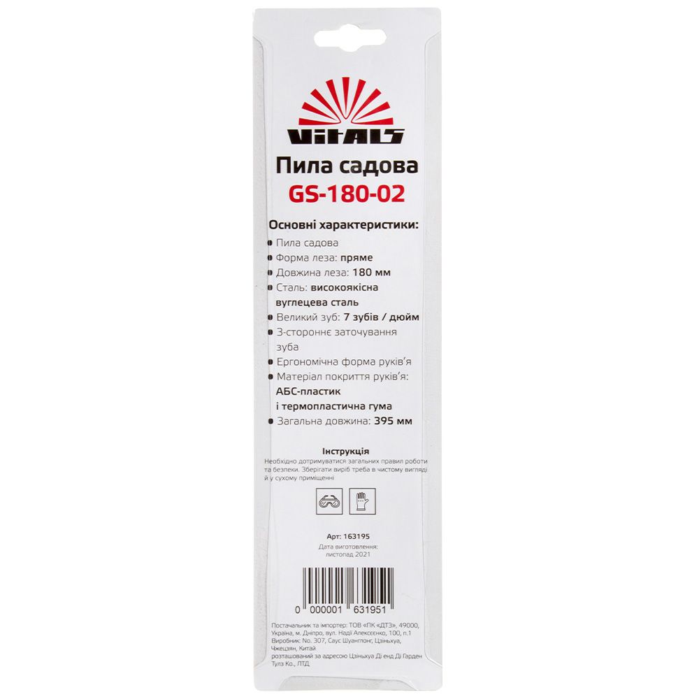 Опис садової пили Vitals GS-180-02