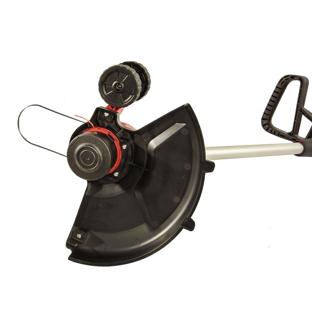Поворотний механізм косильної головки та обмежувальний ролик забезпечують комфортне косіння вздовж бордюрів, а коли ви працюєте поруч з деревами, металева захисна дужка ефективно оберігає стовбури від пошкоджень.