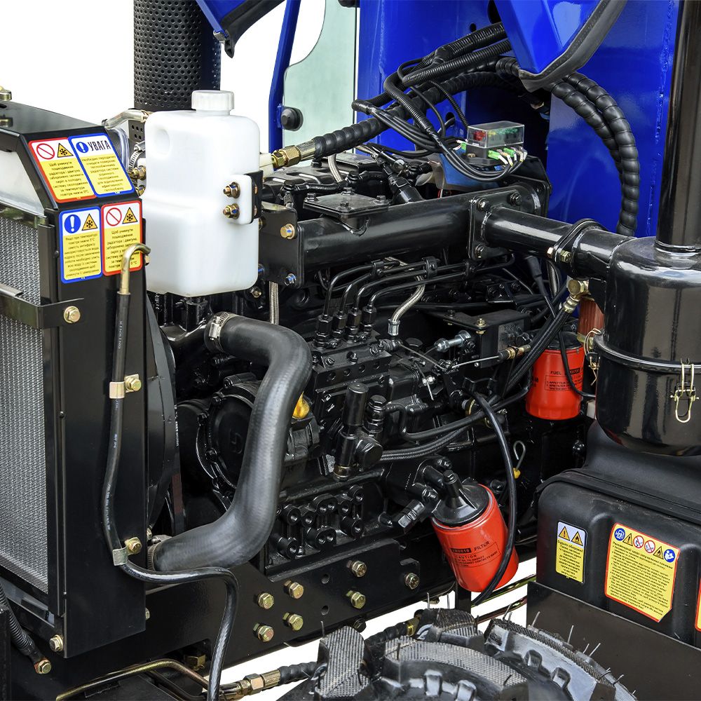 Трактор оснащений 4-циліндровим дизельним двигуном КМ490ВТ об’ємом 2545 см³ і номінальною потужністю 40 к.с. (29,4 кВт) з безпосереднім упорскуванням палива. Контактно-масляний повітряний фільтр із масляною ванною, паперовим елементом, металевою сіткою та циклонним сепаратором забезпечує надійний захист від пилу. Для полегшеного запуску в холодну пору встановлена електрофакельна свічка розжарювання. Паливний бак місткістю 65 л дозволяє працювати довгий час без дозаправлення.