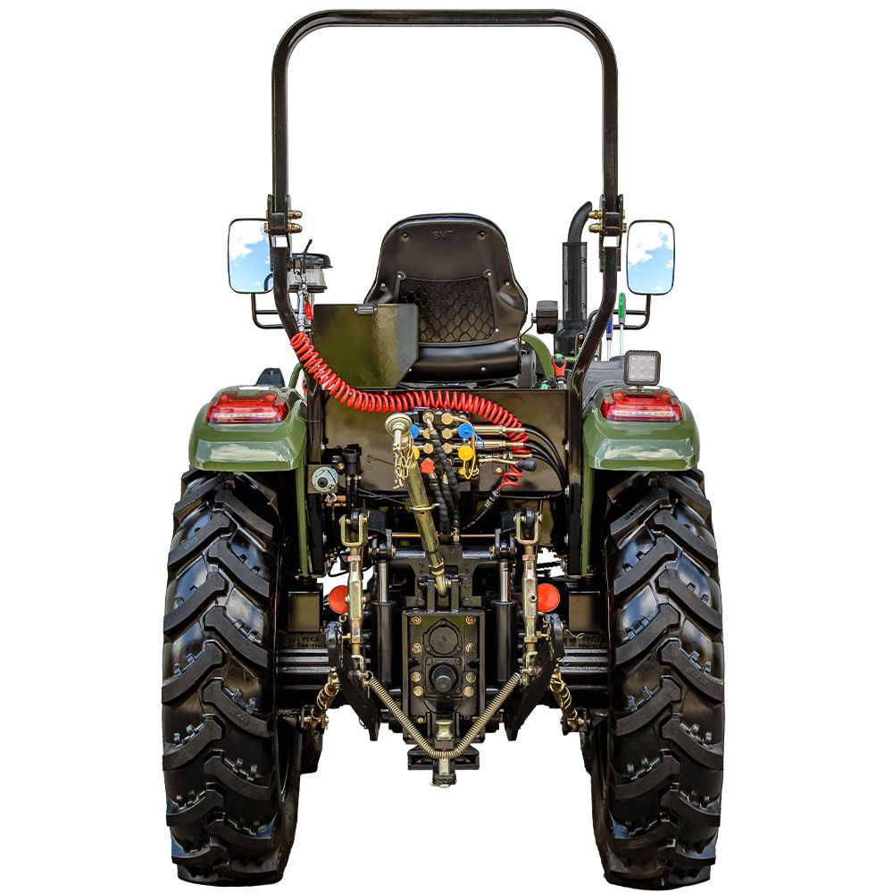 Універсальна 3-точкова навіска з двома гідроциліндрами дозволяє працювати з широким спектром сільгоспзнарядь. Вал відбору потужності на 540–1000 об/хв. Є 4 гідровиходи зі швидкорозкривними муфтами — 2 напір/злив і 2 злив — для зручного підключення обладнання.
