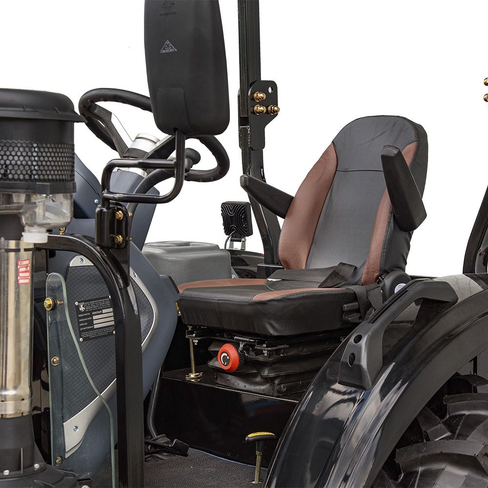 Попри відсутність кабіни, трактор має зручне сидіння з амортизатором та регулюванням, рівну підлогу, цифрову панель приладів, а також електророзетку для причепа, освітлення, дзеркала, сигналізацію та фари. Магнітола, кондиціонер та обігрів не передбачений, що робить цю модель простою та недорогою в обслуговуванні.