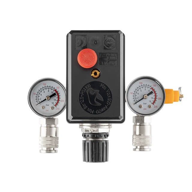 Прессостат 380 В (блок автоматики компрессора) 10 bar в сборе, (прессостат, редуктор, 2 манометра, предохранительный клапан, два выхода) INTERTOOL PT-9097