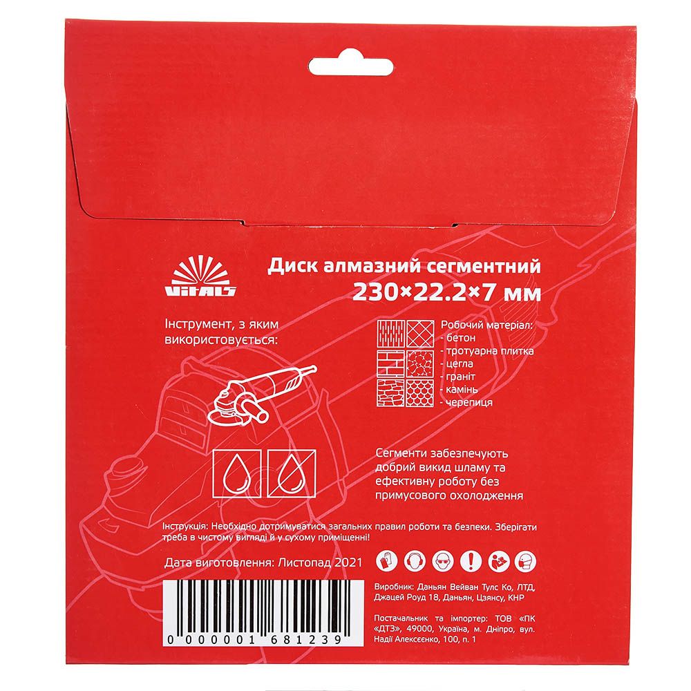 Диск алмазний Vitals сегментний 230х22.2х7 мм