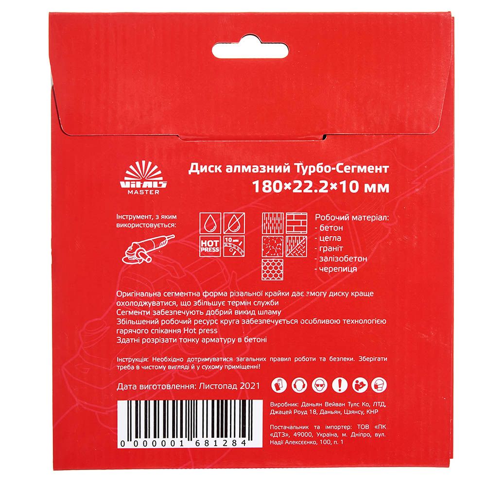 Опис алмазного диску Vitals Master Турбо-Сегмент 180×22.2×10 мм
