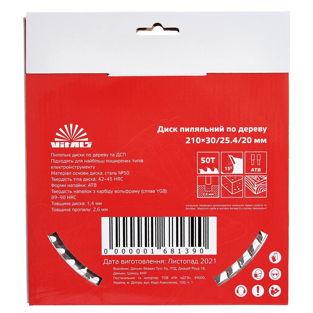 Опис пиляльного диску Vitals по дереву 210x30/25.4/20, ATB 50