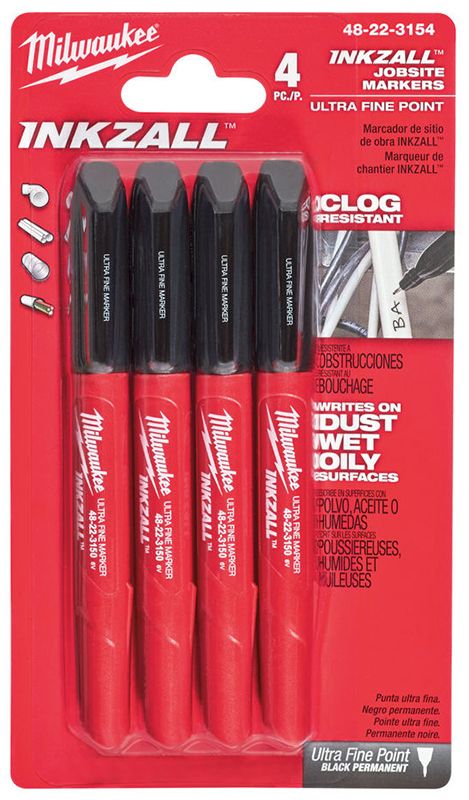 Маркировочные маркеры Milwaukee® INKZALL ™ Ultra Fine Point оптимизированы для тяжелых условий рабочей площадки.