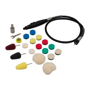 Гибкий вал – для точной работы в труднодоступных местах.Полировочные круги (желтые, синие, зеленые, красные) – для разных этапов шлифования и полировки.