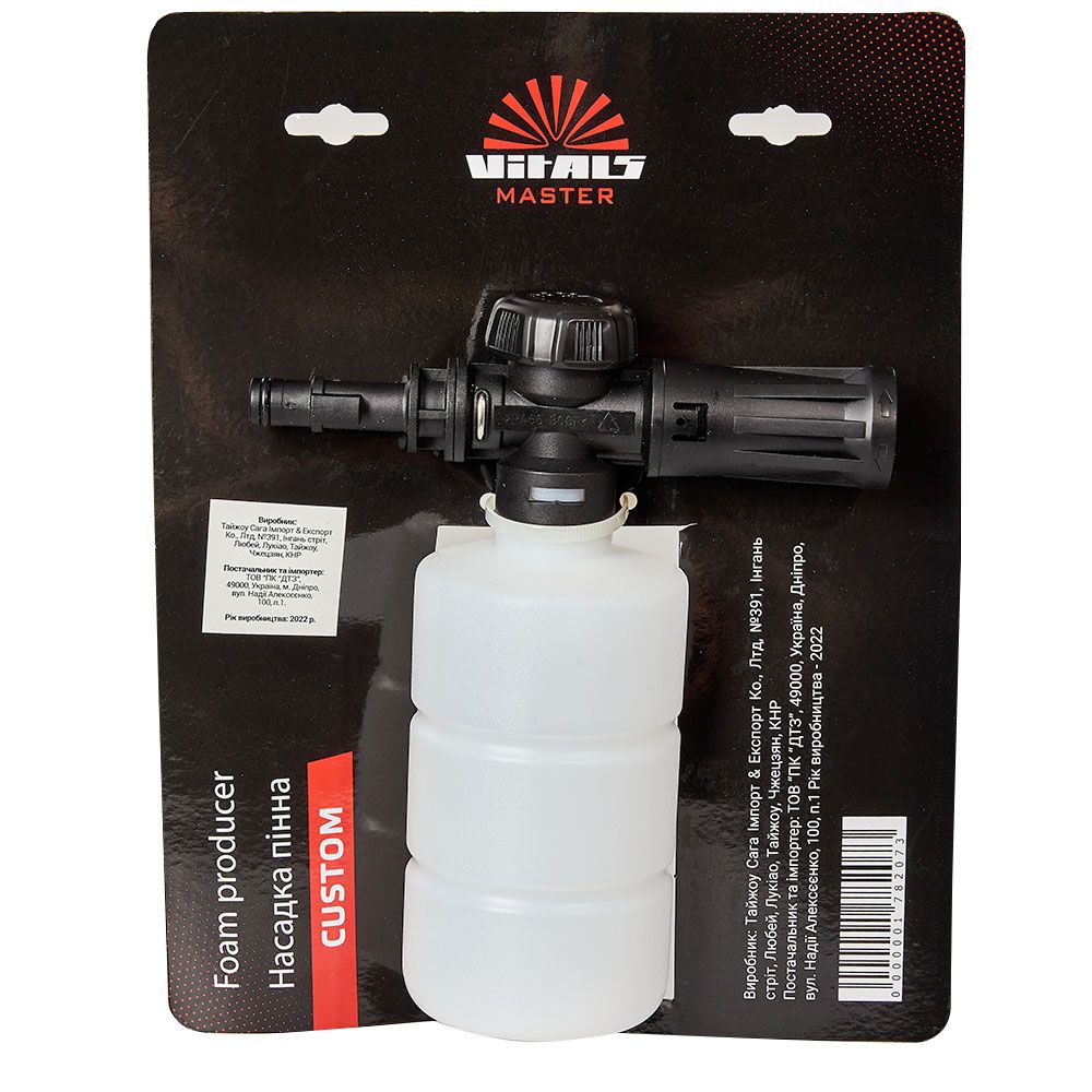 Пінна насадка Vitals Custom для мийок високого тиску формує якісну інтенсивну піну, яка легко та рівномірно наноситься на поверхню, що обробляється.