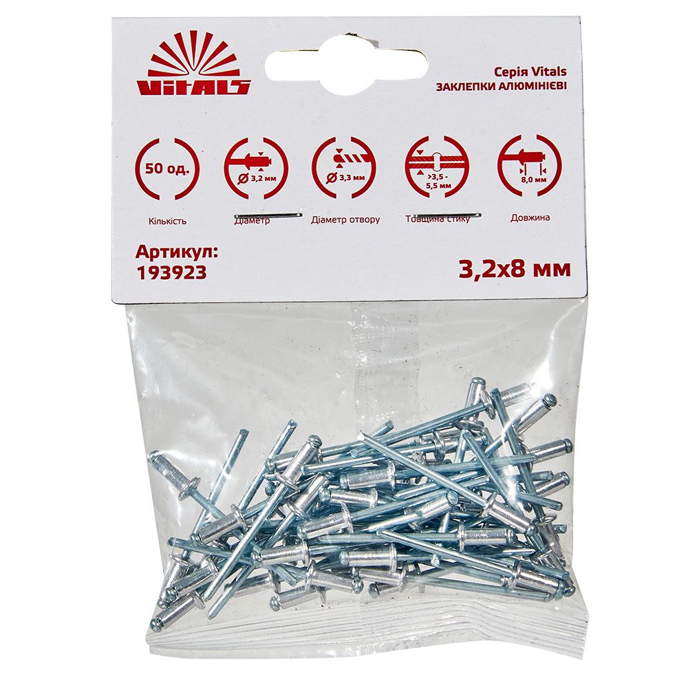 Опис заклепок алюмінієвих 3.2x8 мм (50 од.) Vitals
