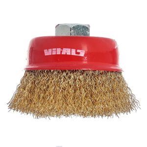 Щітка-чашка Vitals гофрована латунована 75 мм М14, 0,3 мм призначена для обробки дерева, зняття фарби, шліфування металу, зняття іржі.