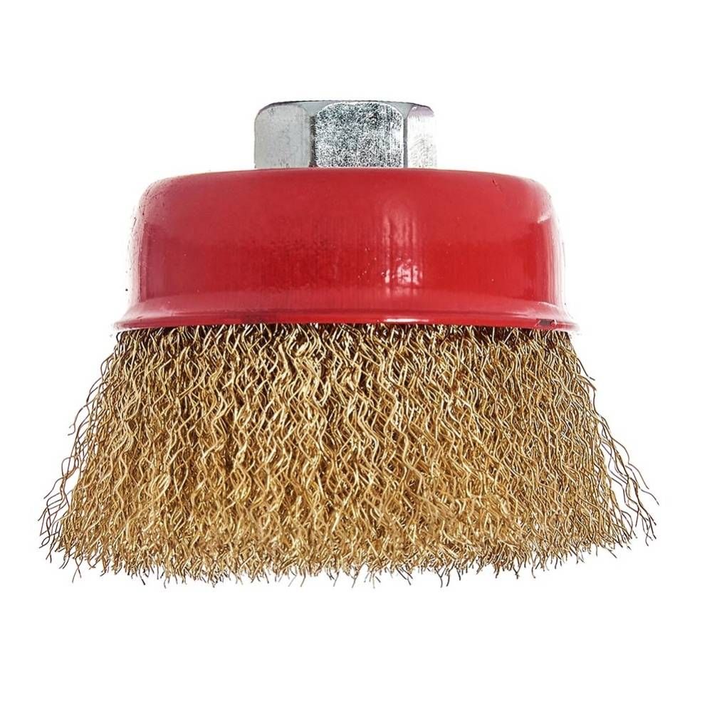 Щітка-чашка Vitals гофрована латунована 85 мм М14, 0,3 мм призначена для обробки дерева, зняття фарби, шліфування металу, зняття іржі.