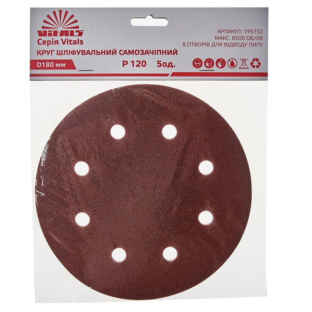 Круг шліфувальний самозачіпний Vitals 180 мм, 8 отв., з. – 120, 5 од.
